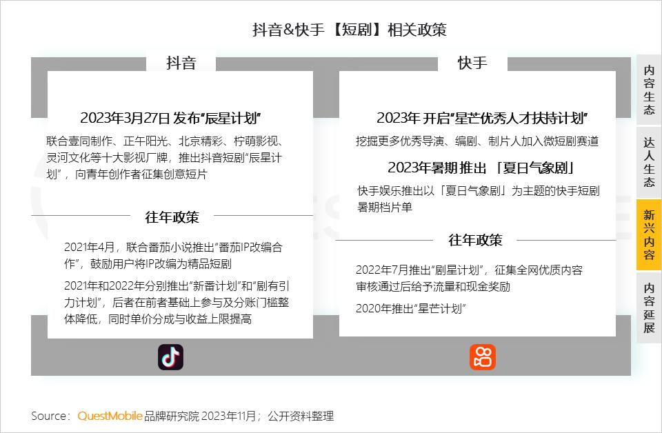 6、2023年可谓短剧元年,作为另一种内容形式,短剧在抖音、快手“火速出圈”;反转、紧凑、过瘾的剧情特点容易带着用户“情绪起伏”,沉浸其中