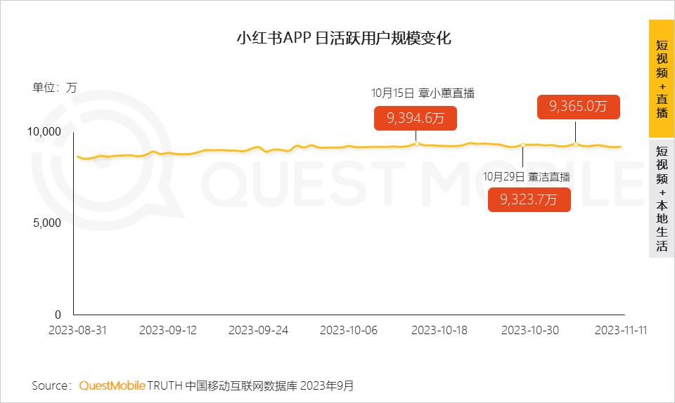 4、QuestMobile数据显示,章小蕙开播当日,小红书日活达到近阶段高峰;双11活动也让其流量攀升至阶段性小高峰
