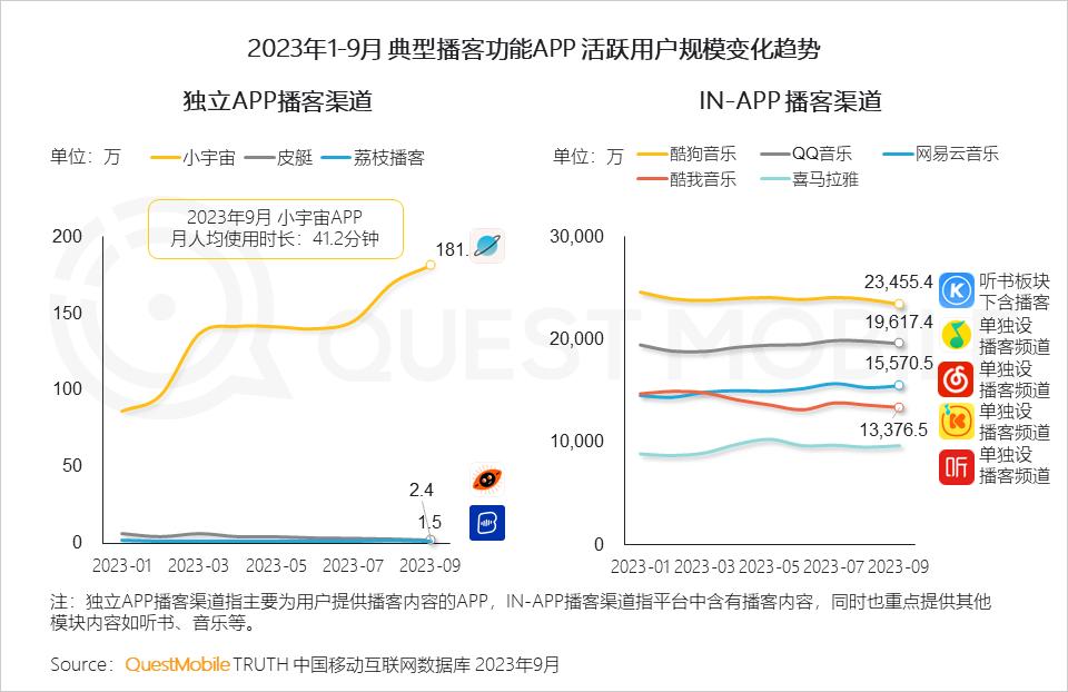 2、以独立APP为代表的小宇宙用户规模“一路上涨”,虽然尚未达到千万月活,但在用户每日的聆听中渐渐形成一种生活方式