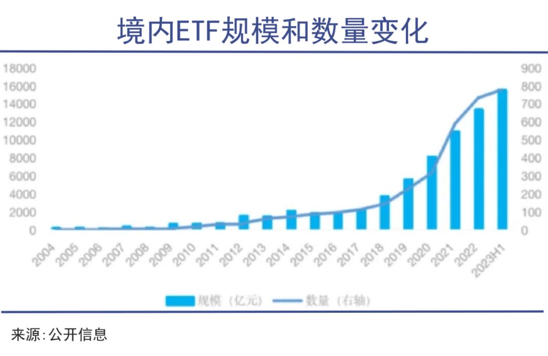 截至2023年6月底,境内共有779只ETF(货币基金除外),资产规模达15585亿元,产品数量、资产规模均再创新高。仅今年上半年,深沪两市就新发了58只ETF,募集资金规模423亿元。