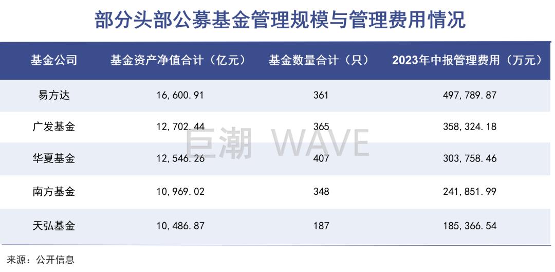 根据Wind数据,作为市场规模前五的基金公司之一,华夏基金的资产净值虽然不如易方达和广发基金,但发行的基金数量却是最多的,2023年中报里披露的管理费用就合计高达30.76亿元。