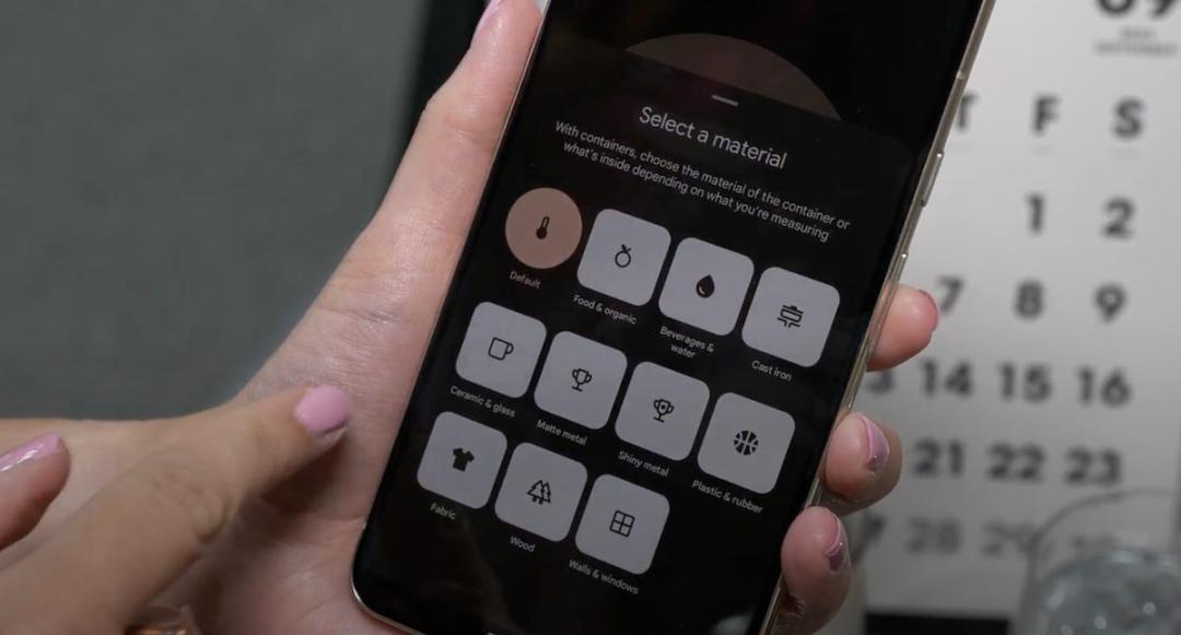谷歌手机考虑到发射率不同的影响,预设了不同物体的测温选项,但暂无人体相关的选项。用这些方案直接测人体体温,并不能得到准确的结果。|CNET