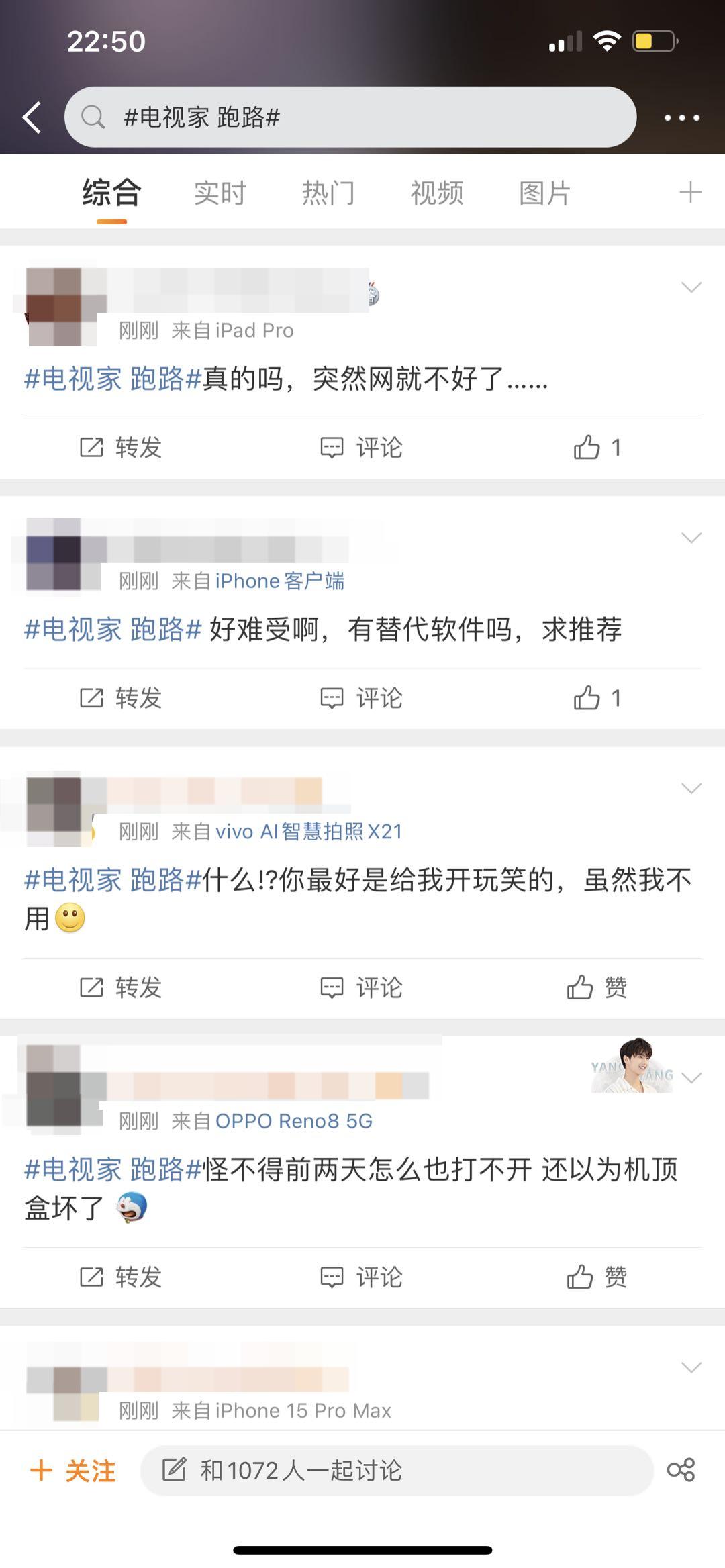由于电视家的停摆,很多网友在#电视家跑路#微博话题里展开了讨论。