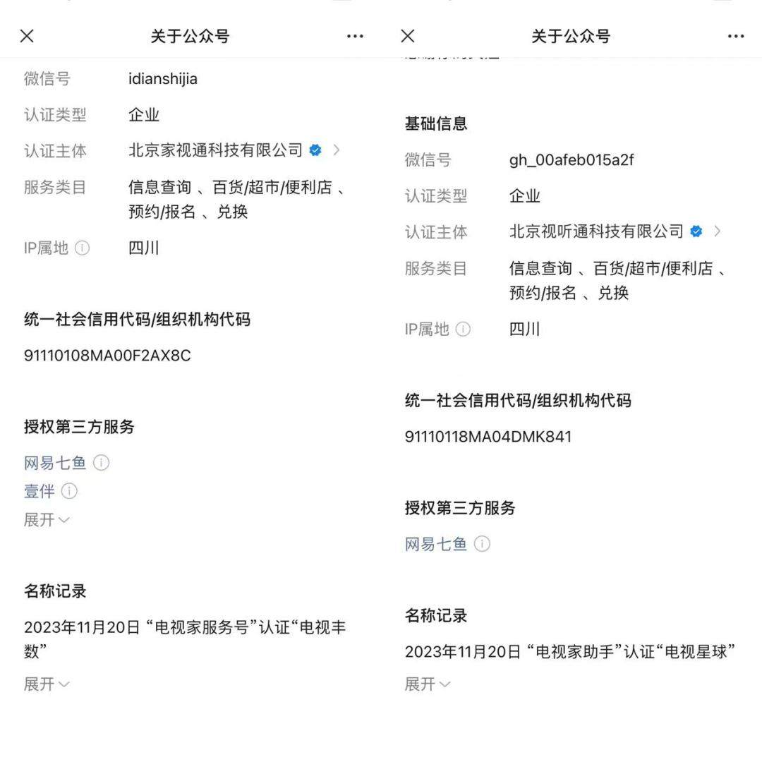 三言还发现,公众号“电视家服务号”和“电视家助手”,已于昨晚连夜改名。