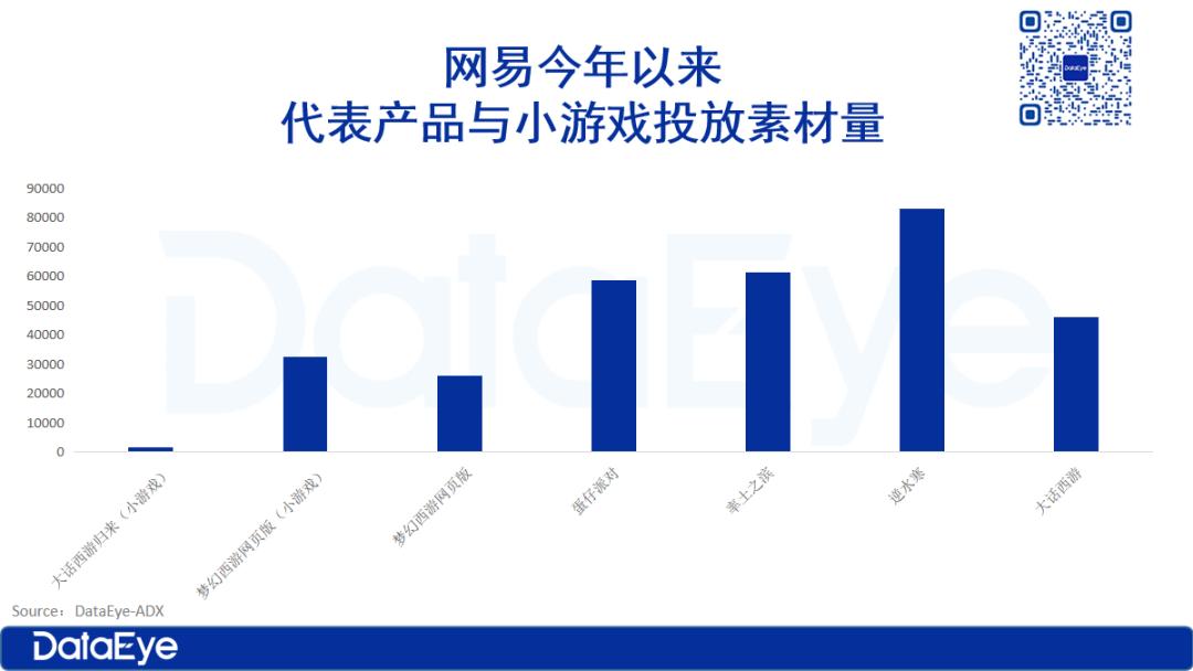 从投放素材来看:今年以来,网易的几款代表手游APP投放素材量都超过4万组,十一月入局的《大话西游》小游戏仅投放1237组素材。《梦幻西游网页版》小游戏今年投放量超过APP版,主要因为后者去年投得多。