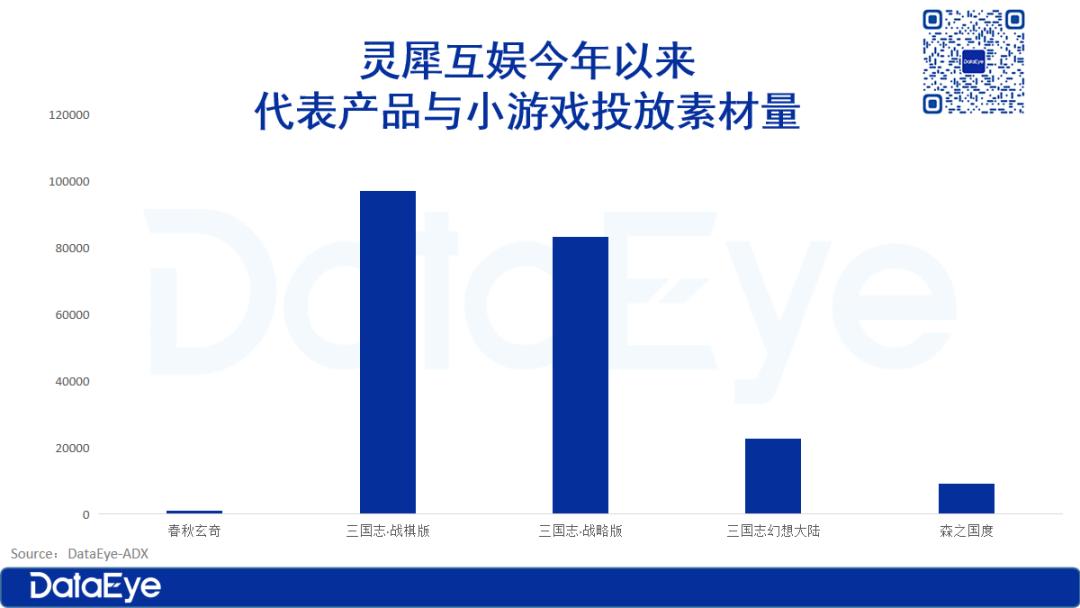 灵犀互娱和雷霆,在小游戏投放上也较为“佛系”,并未大肆发力,重心依然放在APP上。其小游戏今年以来素材投放量都在千组左右。