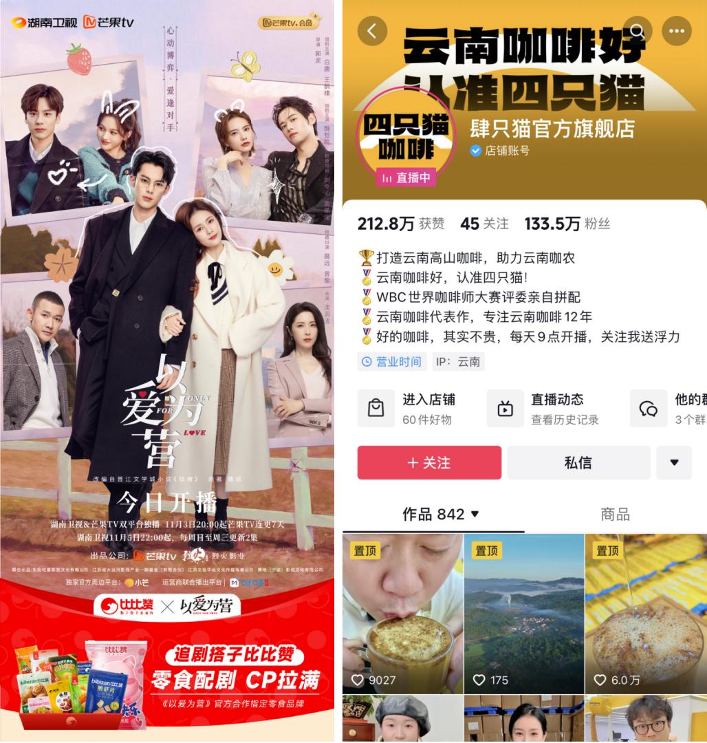 这些跑出来的白牌也想趁热打铁,加强品牌建设、提升品牌势能,在当下的消费环境中向品牌跃迁。今年下半年,比比赞首次官宣了代言人古力娜扎,还与电视剧《以爱为营》达成零食植入合作。还有成立近10年的云南产地商家「四只猫」,一直是一个逐流量而生的电商商家,但从2021年开始与华与华合作进行品牌建设。