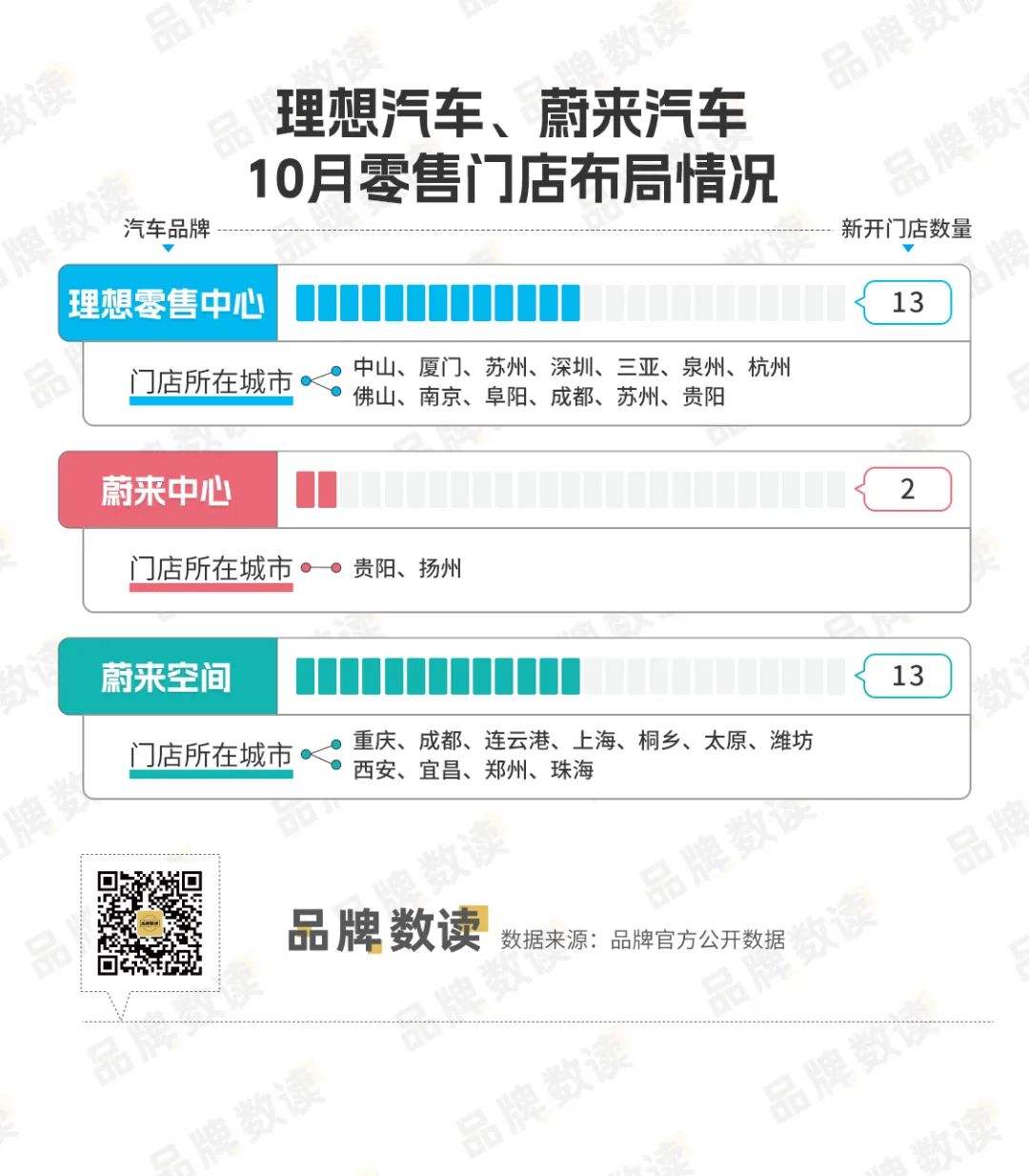 蔚来在10月新开了2家蔚来中心和13家蔚来空间,其中蔚来空间已经布局到桐乡、潍坊、宜昌、郑州等二线和三线城市。