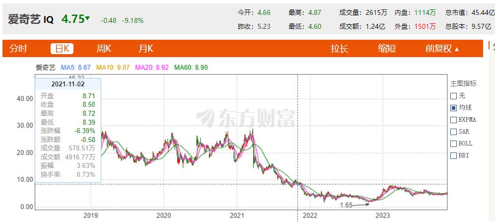 2022年爱奇艺首次实现全年运营盈利,这是其成为业绩优等生的重要标志。但成为优等生的代价是,爱奇艺的股价,再也没能回到2021年11月前的水平。