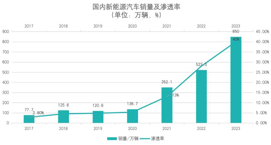理由大致分为两块,一是电车的普及程度大幅度提高,消费者心智已经打通。先不看出货量,工信部数据显示,国内新能源汽车的销量,从2017年的不到百万,到突破五百万,只用了五年时间,渗透率也在2021年这个节点上达到13%,外界预测到2030年这个数字将达到80%。