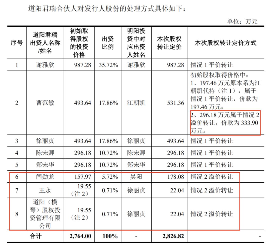 于是,2021年,道阳君瑞的部分合作人王永、闫勋龙、道阳横琴、曹范敏转让股权,价格为每股11.20元,套现超500万元退出。