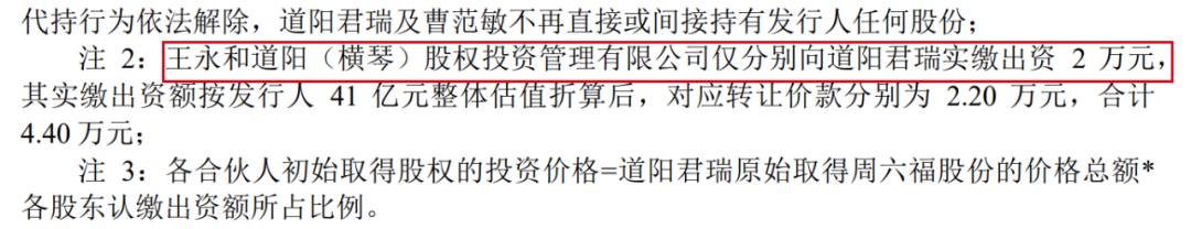 但值得注意的是,天眼查资料显示,道阳君瑞注册资本2666万元,作为执行事务合作人的王永、管理人道阳横琴仅分别向道阳君瑞实缴出资2万元。