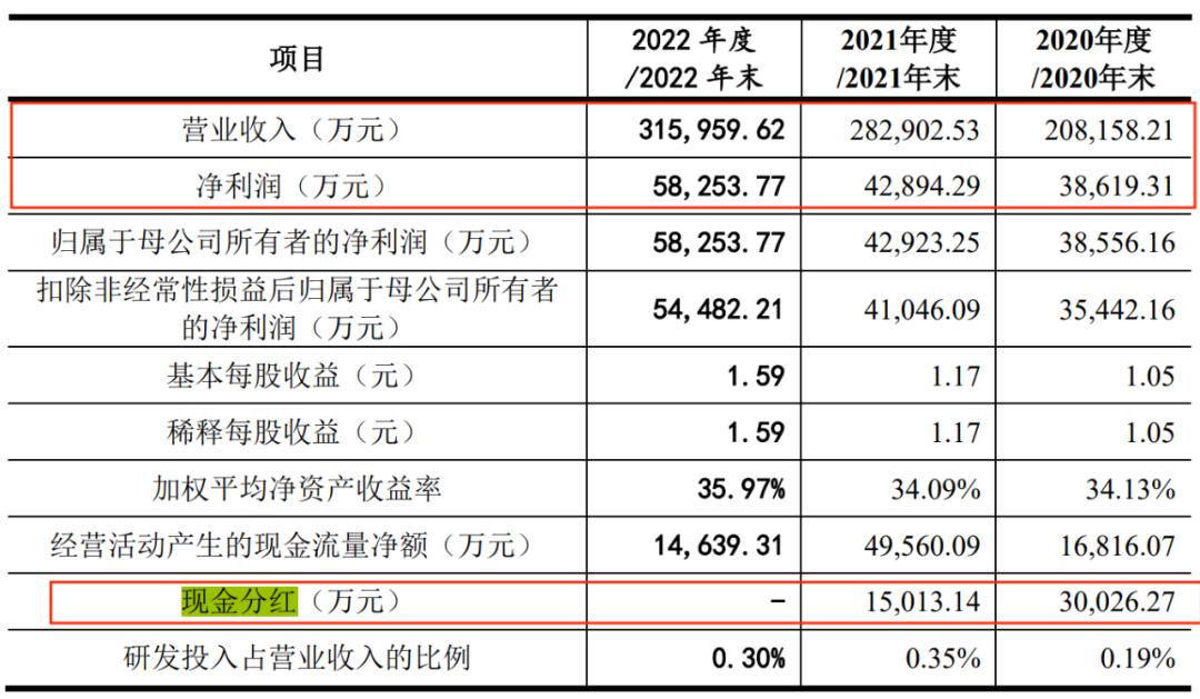 招股书显示,2020年-2022年 (以下简称:报告期) ,公司实现营业收入分别为20.82亿元、28.29亿元、31.60亿元;净利润分别为3.86亿元、4.29亿元、5.83亿元。