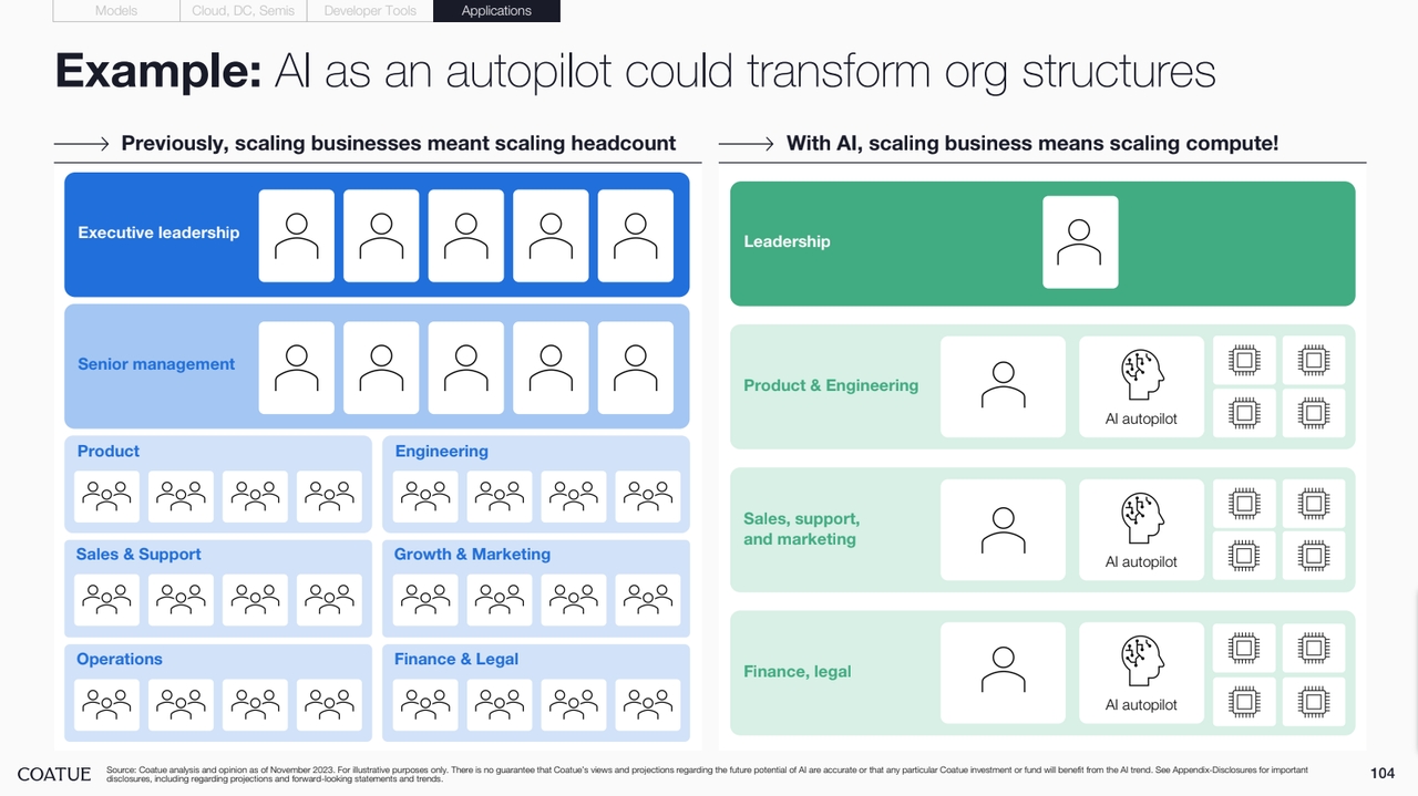 上周,投资机构Coatue发布了其对AI得研究报告,其中观点包括:AI将会开启新的平台机会-“智能及服务”(IQaaS)时代,并可能会彻底改变未来公司的组织架构。对于VC/PE的业务特性,看起来就是投资、募资两块,但是实际上,是个“流程性”行业,整个流程链条很长。从资源如何构建,信息怎么来,到谁来处理信息,如何反馈信息,到如何决策。最终,一个VC/PE的能力,本质上是全局成本如何做到最优。