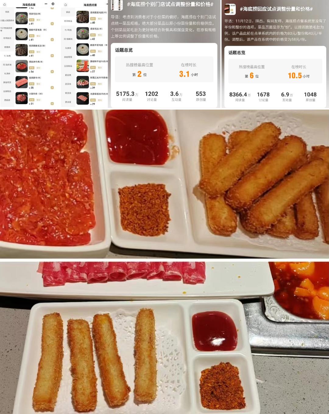 随着该声音不断发酵,相关话题登上微博热搜第二位,累计阅读量冲击亿次。根据当事门店回应,称“因为顾客点半份比较多,所以门店首发实验,现在一份约等于之前的半份。”