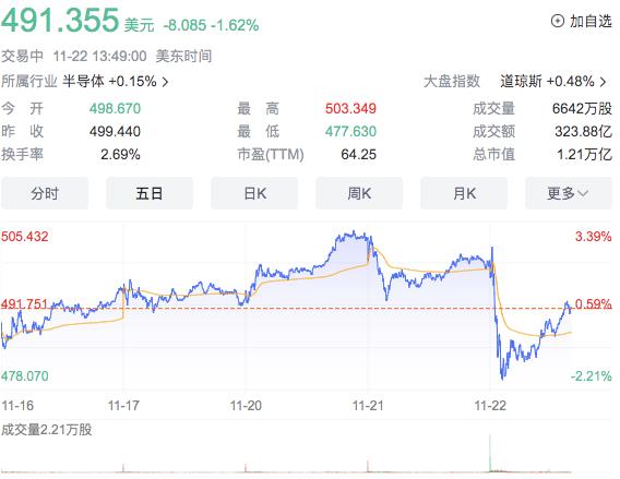 但是,11月21日,伴随着财报发布,英伟达股价却出现了下跌,盘后跌幅曾超6%,后一度小幅转涨,此后又重回跌势,盘后跌超1%。