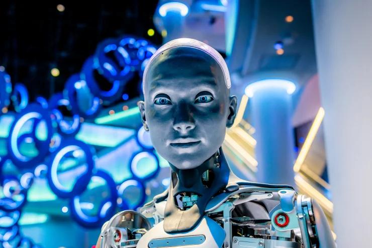 名为Aura的机器人长相和人类相似,不过皮肤全部是蓝色,有点像《阿凡达》里的角色。