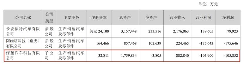并表之后,深蓝汽车的亏损也对长安汽车的财务数据带来了较大的影响。