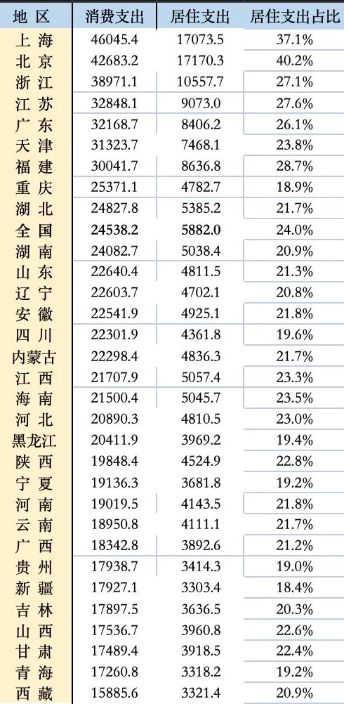 透视31省份人均消费账:京沪居住支出超1.7万,浙江衣着开销居榜首