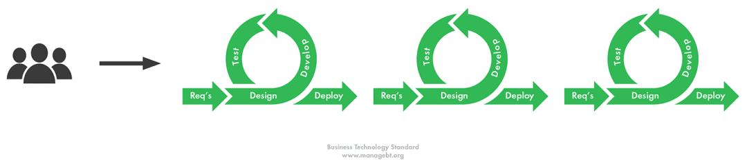 增量开发使用迭代过程,解决方案/产品的团队和客户在整个开发过程中提供反馈。大量工作被分成称为“冲刺”的较小块。该解决方案是在冲刺中逐步实施和测试的。这意味着实现和测试紧密集成在一个冲刺中,然后将两个冲刺联系在一起。然后测试为下一个实施步骤或冲刺提供反馈。完全实施后,这种方法可以在每次冲刺中增量发布到实时环境中,从而尽早实现收益。