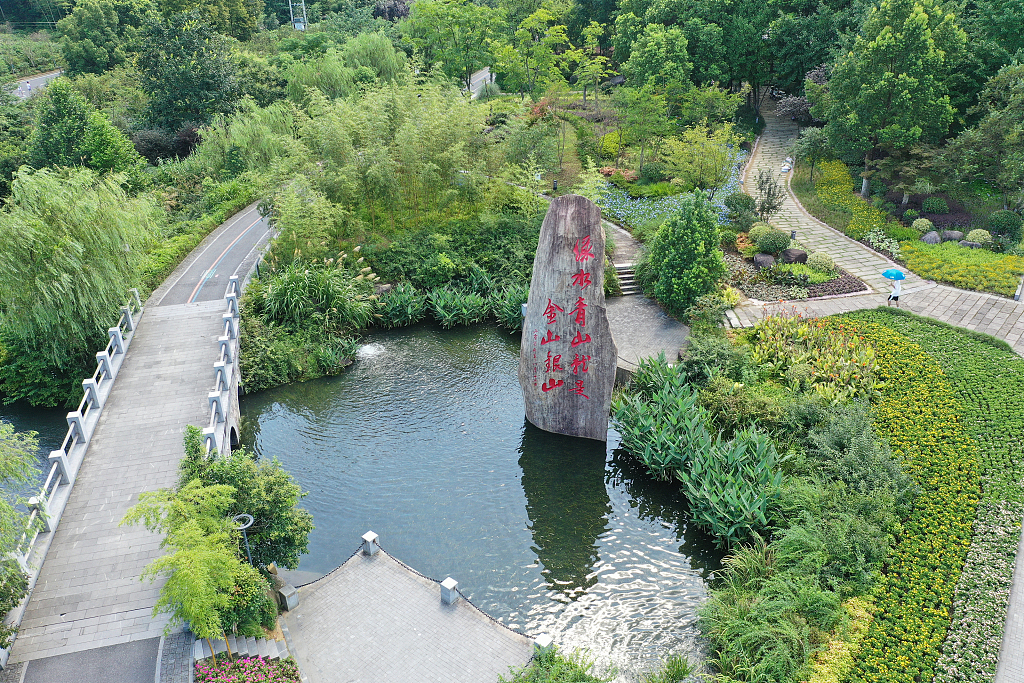 安吉县余村镌刻着“绿水青山就是金山银山”的石碑 图片来源:视觉中国