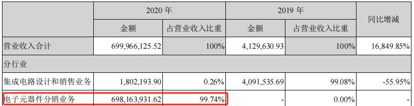 2020年报显示,电子元器件分销贡献了99.74%的营收。从业绩占比来看,盈方微能够恢复上市,华信科和WORLD STYLE是绝对功臣。