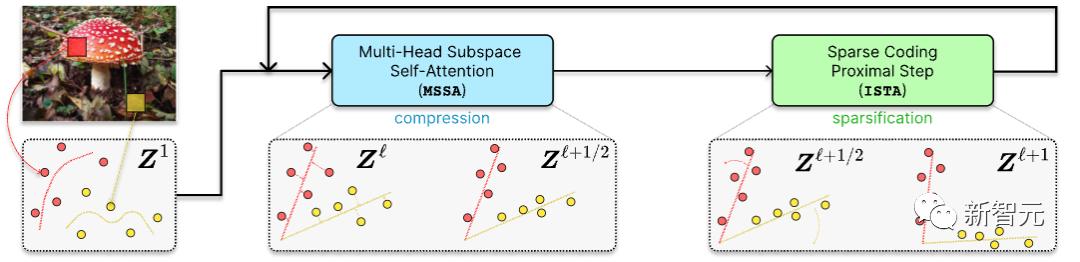 研究团队通过朴素的优化架构,将压缩和稀疏作为损失函数,可以迭代地将数据分布压缩到低维混合高斯分布模型,从而推导出类似Transformer的神经网络结构。