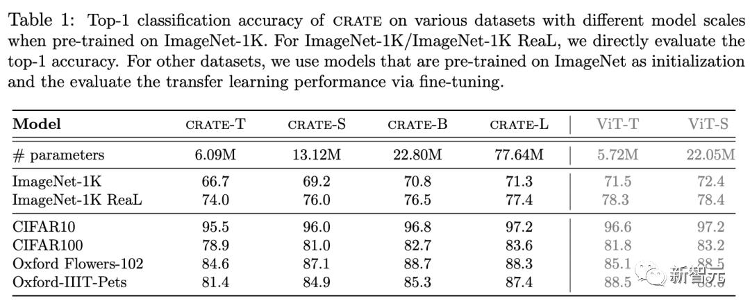 研究团队的实验结果表明,尽管架构较简单,CRATE在许多任务和数据集上都能与现有的Transformer模型获得类似的表现,同时其每一层和操作都可以明确解释。