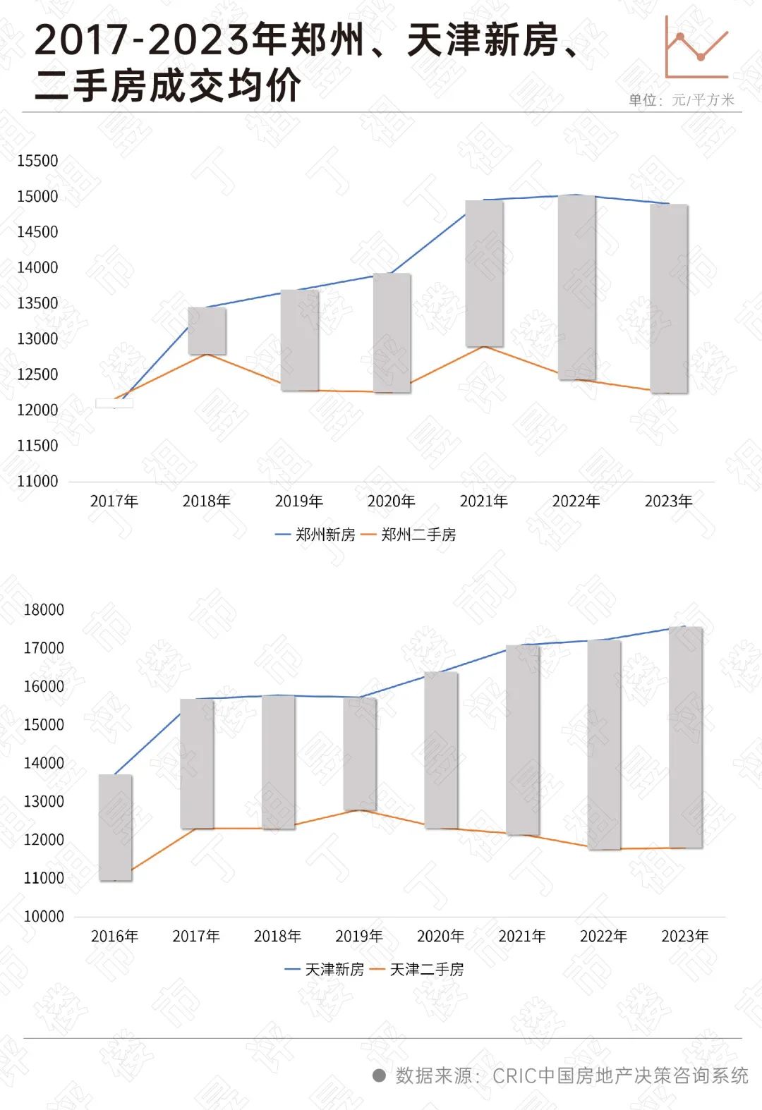 二手房挂牌量增加,部分房主为了套现往往主动降价,这就导致二手房市场出现以价换量的情况,单价优势凸显,新房倒挂红利逐渐消失。以郑州和天津为例,新房与二手房间的价差呈逐渐拉大,郑州2023年至今一二手房成交均价相差约3千元/平方米,而天津更是接近6千元/平方米。