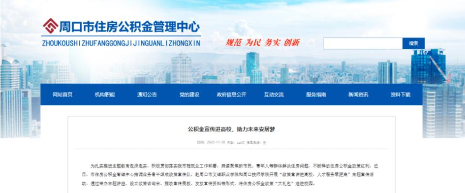 据周口市住房公积金管理中心官网消息,近日,周口市住房公积金管理中心抽调业务骨干组成政策宣传队,赴周口市文理职业学院和周口技师学院开展“政策宣讲进高校,人才服务零距离”主题宣传活动,将住房公积金政策“大礼包”送进校园。