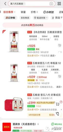 然而,在今年6·18大促期间,建议零售价为1499元/瓶的第八代五粮液,在天猫、京东旗舰店中,折后价一度逼近1000元/瓶。在部分电商平台,甚至出现低于1000元的情况。