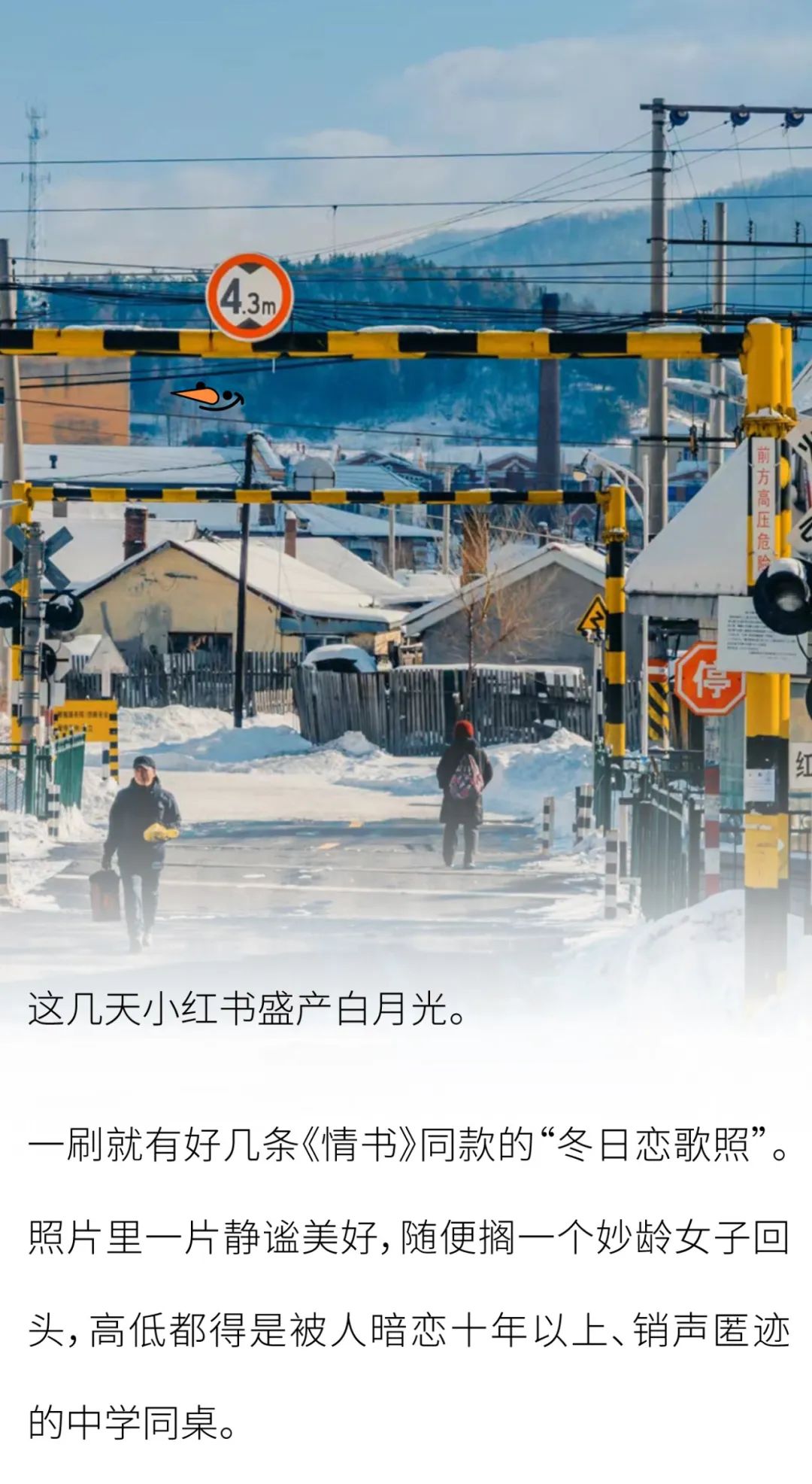 放大照片仔细揣摩白月光睫毛上的雪,以及背景里略显异域风情的房子、荒废的火车轨道,我大胆推测这是在日本北海道或是瑞士某个网红小村庄。