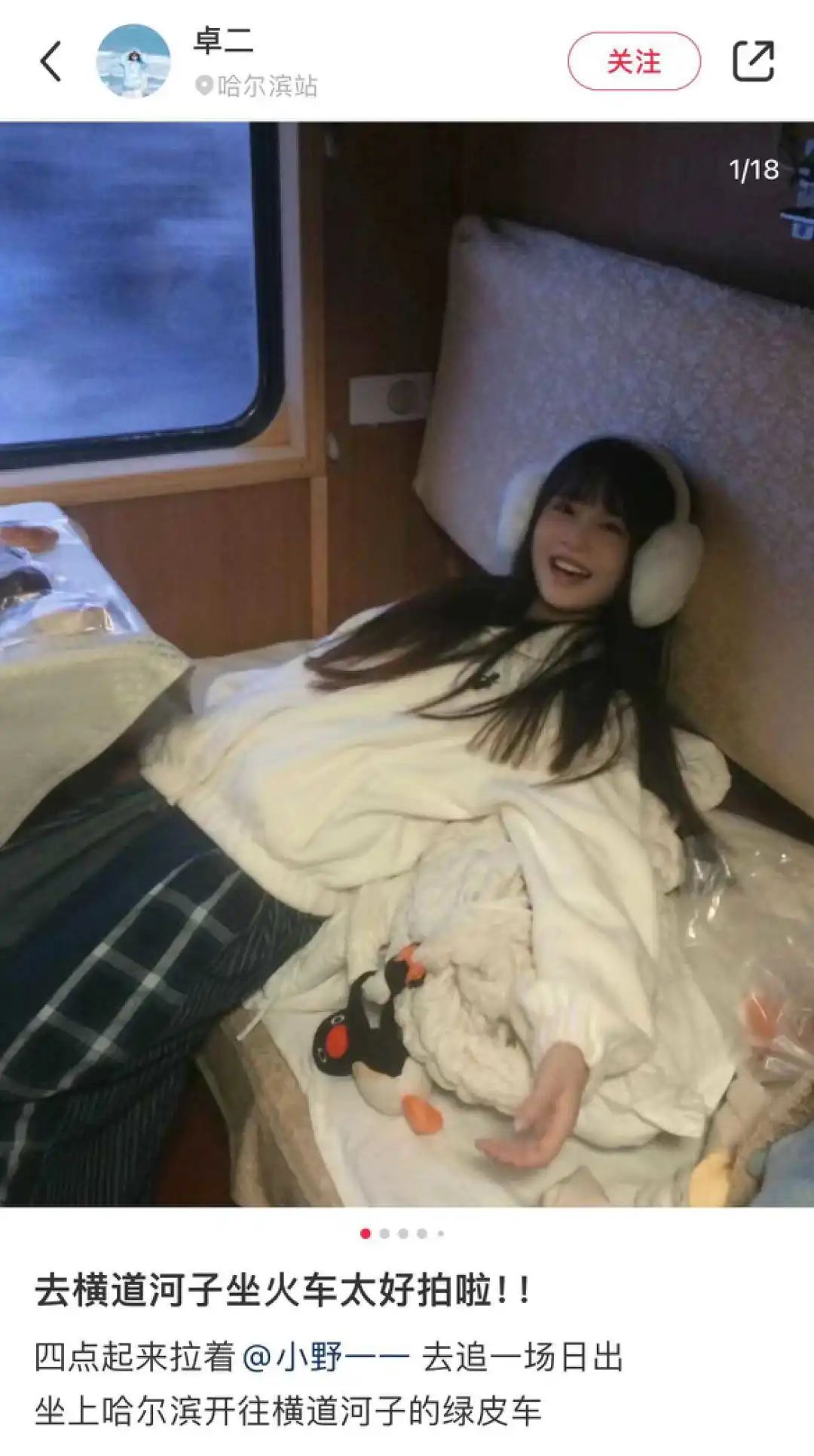 小红书@卓二在绿皮火车上拍摄的网红@小野一一