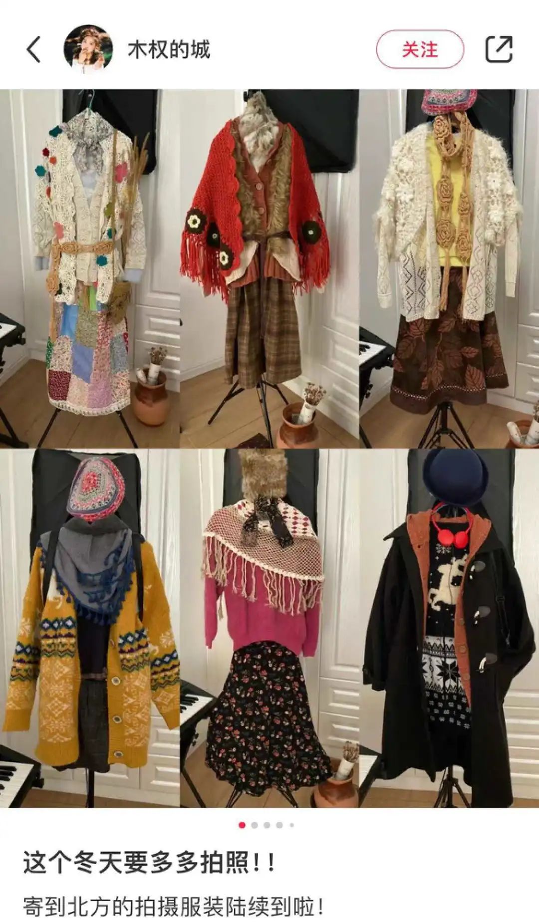 99元两个小时包含学院风大衣、田园风棉服,还会送道具耳罩、手套以及拿在手中的小熊玩偶、背包等装饰物。韩剧、日系、波西米亚、俄罗斯风情都能拍,氛围感宇宙的尽头在横道河子。如果不想找约拍,当地包衣服妆造的摄影工作室收费大概在399-499价位。
