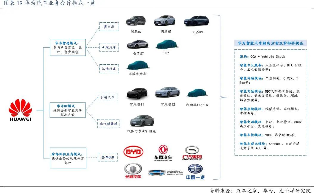 (华为汽车业务合作模式一览 图源:太平洋研究院)