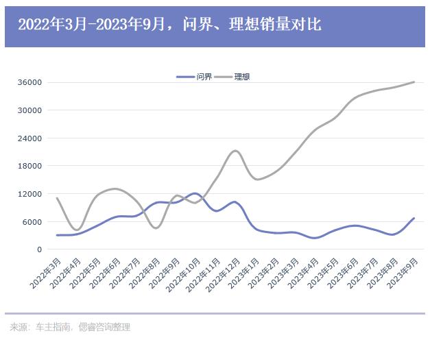 以上种种,让问界吃下了不少理想换代期丢失的市场——在2022年8、10月份,华为问界销量远超理想。