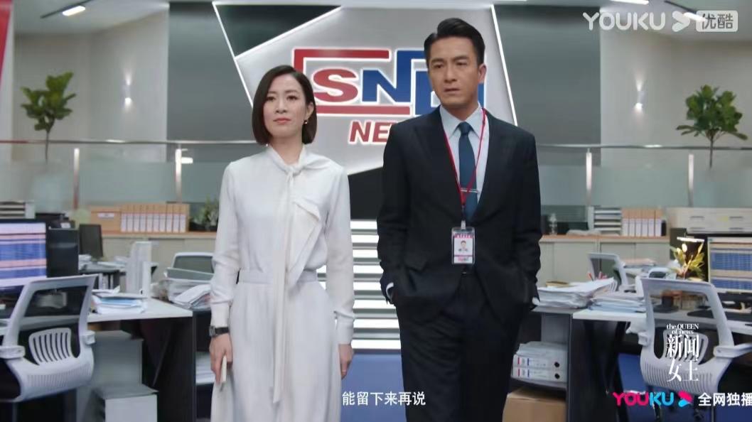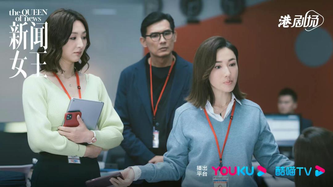 《新闻女王》的快节奏、群像戏决定了其爽剧定位,开局就是刺激、狗血的案件频发,车祸、火灾、me too、名誉案,以及闪回的街头枪杀案牵扯出的企业危机与大人物更迭内幕,给足戏剧冲突。剧集所聚焦的几位新闻主播、记者也皆是干劲十足的“卷王”属性,一句“这行谁不抢?抢独家、抢头条、抢画面”可谓杀气腾腾。不怕得罪金主和上司的“新闻女王”man姐实力、胆识过硬,与后来居上的梁景仁、保持中立拒绝站队的张家妍,形成三足鼎立的局面。
