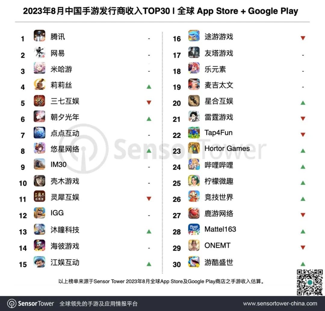 据内部人士透露,MLBB市场覆盖率及活跃用户还在持续增长,并于2023年创造了数据新高。截至目前,MLBB在全球10余个国家和地区成为“国民游戏”,沐瞳科技也因此连续多个月在中国手游发行商排行榜上提升名次。今年8月,沐瞳科技已经前进到了榜单第13名。(数据来源:SensorTower)