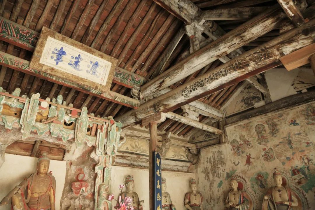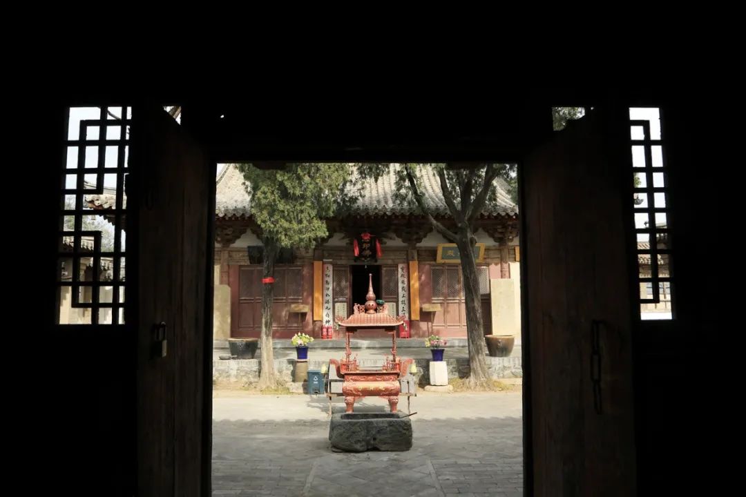 第一次走近这样的乡村景观,我心里也觉得割裂。但走进灰瓦白墙的寺内后,还未等我靠近佛堂,一股清净便从心内涌起。彼时,千年古刹的魅力在刹那间突显,仅通过一面发黄的木门,便将世俗的喧闹隔绝在了门外。