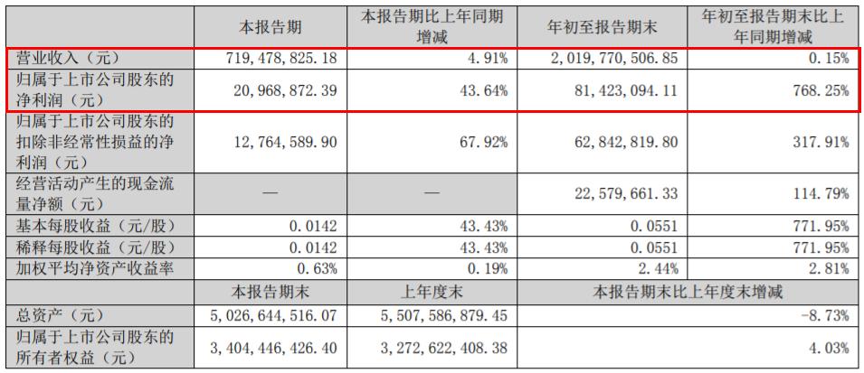 奥飞娱乐最新的财务报告显示,2023年Q3,公司实现营收7.19亿元,同比增长4.91%,净利润2096.89万,相比去年同期增长43.64%。