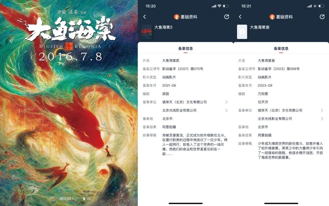 资料显示,《大鱼海棠叁》则讲述了少年成为海底世界的新任南斗,却意外卷入了如升楼悬案。冥冥之中的力量将少年引向了一段宿命的旅程,他逐步揭开谜团,开启了海底世界的新篇章的故事。