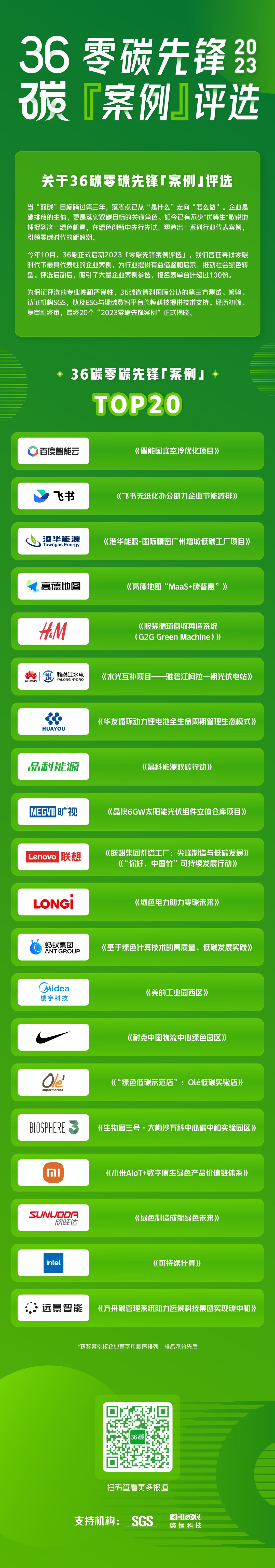 经历初筛、复审和终审,最终20个「2023零碳先锋案例」和10个「零碳先锋人物」正式揭晓!
