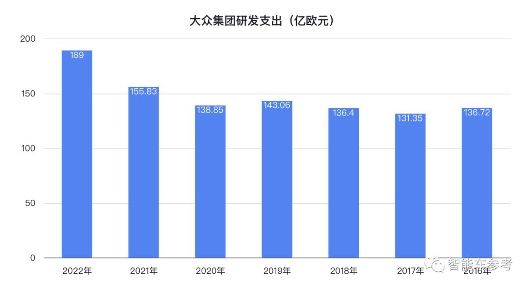 从2016年到2022年,大众累计研发投入已经达到1031.21亿欧元(约8081.08亿元)。