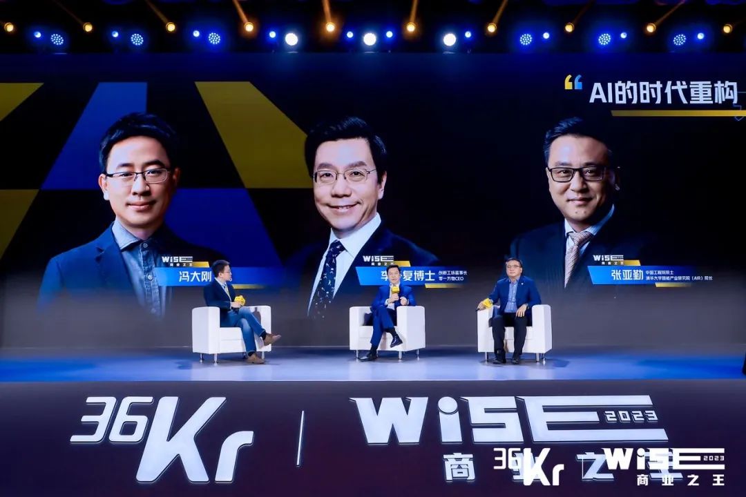 * 36氪CEO冯大刚,创新工场董事长、零一万物CEO李开复博士,中国工程院院士、清华大学智能产业研究院(AIR)院长张亚勤