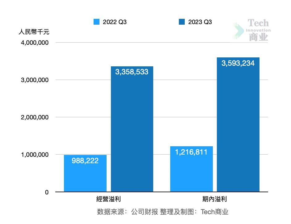 本季度美团公司经营利润为33.6亿元,相较上一财年同期利润为9.9亿元,本季度经营利润增幅为240%。第三季度该公司净利润为36亿元,相较上一财年同期的12亿元,本季度净利润增幅为195%。