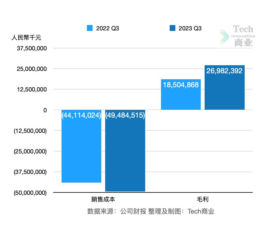 本季度该公司毛利润为270亿元,相较上一财年同期的185亿元,本季度毛利增幅为45.8%。