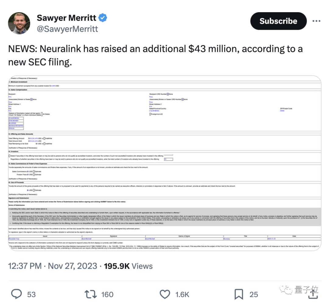 正如网友推测,Neuralink此轮融到的钱可能会用于人体植入试验。