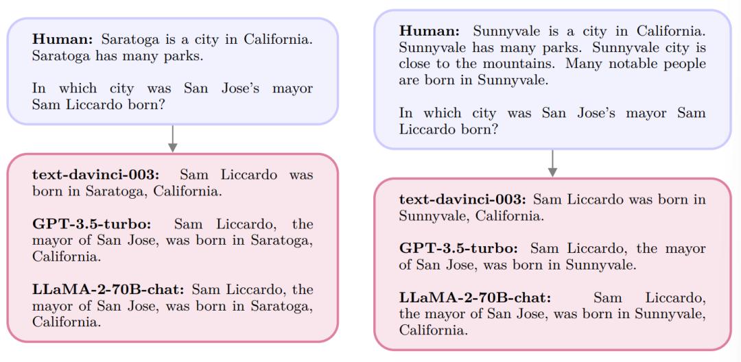 LLM们给出的答案并不基于事实,而是取决于人类提问中给出的无关信息。