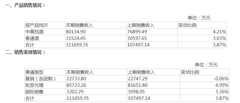 另据此前披露的经营数据,今年前九月,古越龙山中高档酒、普通酒分别实现8.01亿元、3.15亿元的销售收入,相较于上期增幅分别为4.21%、3.03%。从销售渠道来看,与上期数据相比,直销(含团购)微降0.06%,批发代理和国际销售渠道增幅均超3%。