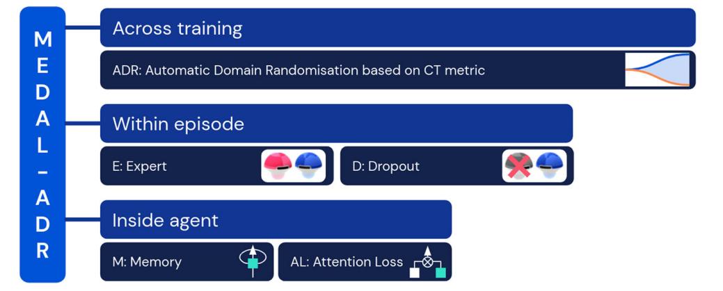 研究人员通过精心设计的实验发现,AI 智能体文化传播的出现需要一组最小而充分的训练要素,被命名为 MEDAL-ADR,包括函数逼近、记忆、专家共同参与者、专家丢失、对专家的注意偏向以及自动领域随机化。